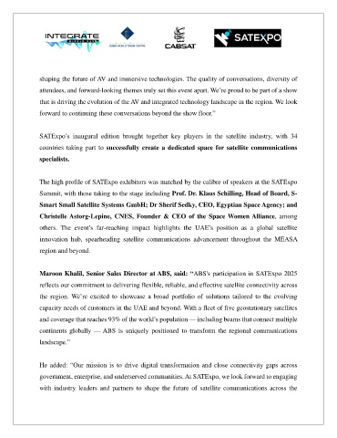 Maroon Khalil, Senior Sales Director at ABS, said: “ABS's participation in SATExpo 2025