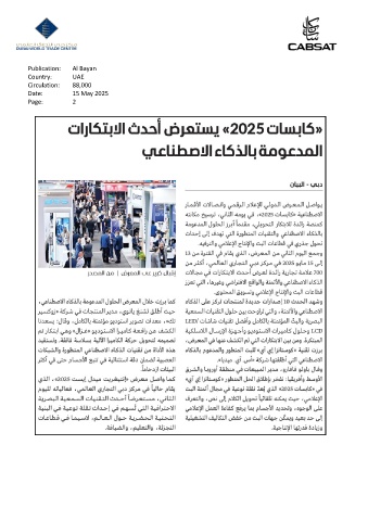 Publication: Al Bayan Country: UAE Circulation: 88,000 Date: 15 May 2025 Page: 2