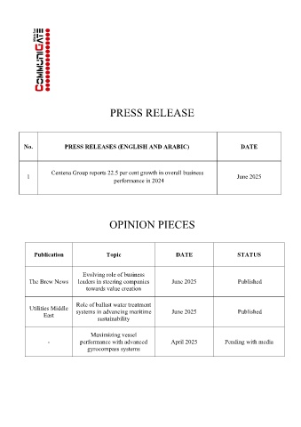 No. PRESS RELEASES (ENGLISH AND ARABIC) DATE