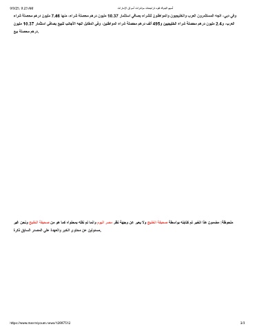ءارﺷ ﺔﻠﺻﺣﻣ مھرد نوﯾﻠﻣ 7.46 ﺎﮭﻧﻣ ،ءارﺷ ﺔﻠﺻﺣﻣ مھرد نوﯾﻠﻣ 10.37 رﺎﻣﺛﺗﺳا ﻲﻓﺎﺻﺑ ءارﺷﻠﻟ نوﻧطاوﻣﻟاو نوﯾﺟﯾﻠﺧﻟاو برﻌﻟا نورﻣﺛﺗﺳﻣﻟا ﮫﺟﺗا ،ﻲﺑد ﻲﻓو