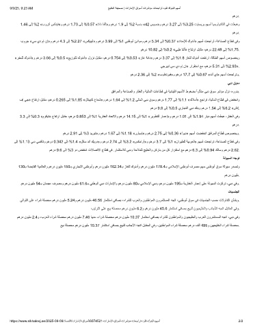 «رﻔﺣﻠﻟ كوﻧدأ»و مھرد 3.66 ﻰﻟإ %0.5 «ﻊﯾزوﺗﻠﻟ كوﻧدأ» لوزﻧ لﺑﺎﻘﻣ ،مھرد 0.754 ﻰﻟإ %0.53 «زﺎﻏ ﺔﻧاد»و مھرد 3.37 ﻰﻟإ %1.8 زﺎﻐﻠﻟ كوﻧدأ تﻌﻔﺗرا ،ﺔﻗﺎطﻟا مﮭﺳأ صوﺻﺧﺑو