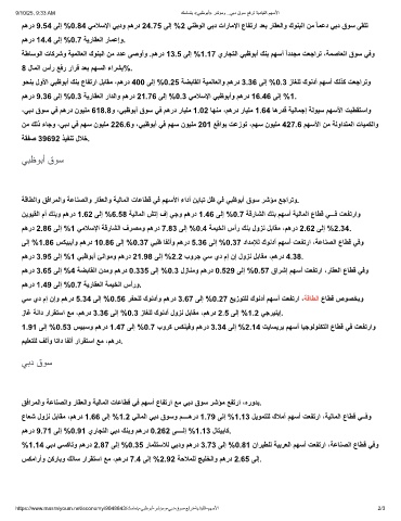 %1.14 ﻲﺑد ﻲﺳﻛﺎﺗو مھرد 2.87 ﻰﻟإ %0.35 رﺎﻣﺛﺗﺳﻼﻟ ﻲﺑدو مھرد 3.73 ﻰﻟإ %0.81 نارﯾطﻠﻟ ﺔﯾﺑرﻌﻟا مﮭﺳأ تﻌﻔﺗرا ،ﺔﻋﺎﻧﺻﻟا عﺎطﻗ ﻲﻓو