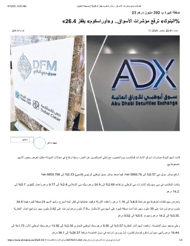 9/12/25, 9:02 AM «ﺞﯾﻠﺧﻟا ﺔﻔﯾﺣﺻ | %26.4 زﻔﻘﯾ «موﻛﺳاروأ»و ..قاوﺳﻷا تارﺷؤﻣ ﻊﻓرﺗ «كوﻧﺑﻟا