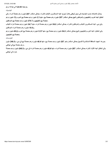 ﺔﻠﺻﺣﻣ مھرد نوﯾﻠﻣ 246.5و ،ﻲﺑد ﻲﻓ ءارﺷ ﺔﻠﺻﺣﻣ مھرد نوﯾﻠﻣ 40.4 ﺎﮭﻧﻣ ،ءارﺷ ﺔﻠﺻﺣﻣ مھرد نوﯾﻠﻣ 287 رﺎﻣﺛﺗﺳا ﻲﻓﺎﺻﺑ ءارﺷﻠﻟ دارﻓﻷا ﮫﺟﺗا لﺑﺎﻘﻣﻟا ﻲﻓو