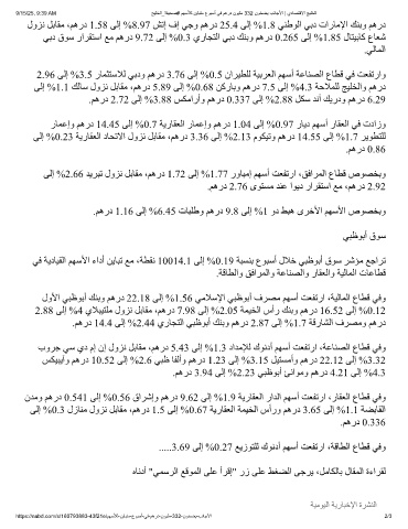 نﺪﻣو ﻢھرد 0.541 ﻰﻟإ %0.56 قاﺮﺷإو ﻢھرد 9.62 ﻰﻟإ %1.9 ﺔﯾرﺎﻘﻌﻟا راﺪﻟا ﻢﮭﺳأ ﺖﻌﻔﺗرا ،رﺎﻘﻌﻟا عﺎﻄﻗ ﻲﻓو