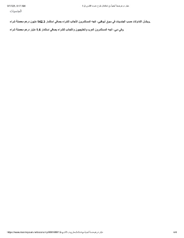 ءارﺷ ﺔﻠﺻﺣﻣ مھرد نوﯾﻠﻣ 142.3 رﺎﻣﺛﺗﺳا ﻲﻓﺎﺻﺑ ءارﺷﻠﻟ بﻧﺎﺟﻷا نورﻣﺛﺗﺳﻣﻟا ﮫﺟﺗا ،ﻲﺑظوﺑأ قوﺳ ﻲﻓ تﺎﯾﺳﻧﺟﻟا بﺳﺣ تﻻوادﺗﻟا نﺄﺷﺑو.
