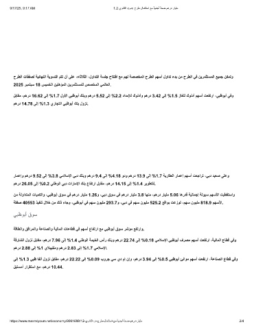 لﺑﺎﻘﻣ ،مھرد 16.62 ﻰﻟإ %1.7 لوﻷا ﻲﺑظوﺑأ كﻧﺑو مھرد 5.52 ﻰﻟإ %2.2 دادﻣﻺﻟ كوﻧدأو مھرد 3.42 ﻰﻟإ %1.5 زﺎﻐﻠﻟ كوﻧدأ مﮭﺳأ تﻌﻔﺗرا ،ﻲﺑظوﺑأ ﻲﻓو