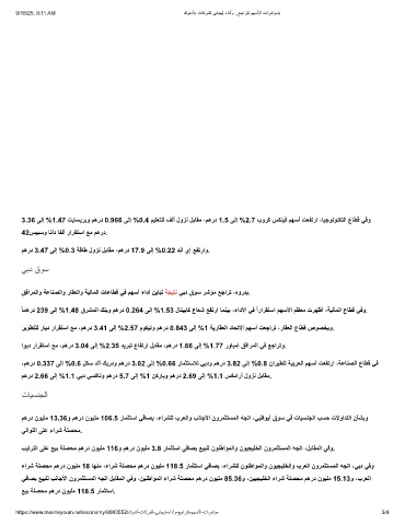 ،مھرد 0.337 ﻰﻟإ %0.6 لﻛﺳ دﻧآ كﯾردو مھرد 3.02 ﻰﻟإ %0.66 رﺎﻣﺛﺗﺳﻼﻟ ﻲﺑدو مھرد 3.82 ﻰﻟإ %0.8 نارﯾطﻠﻟ ﺔﯾﺑرﻌﻟا مﮭﺳأ تﻌﻔﺗرا ،ﺔﻋﺎﻧﺻﻟا عﺎطﻗ ﻲﻓ