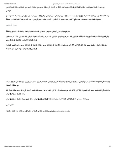 ﻲﺑد تارﺎﻣﻹا كﻧﺑو ﻲﻣﻼﺳﻹا ﻲﺑد مﮭﺳأ رارﻘﺗﺳا ﻊﻣ ،مھرد 14.4 ﻰﻟإ %0.7 رﯾوطﺗﻠﻟ رﺎﻣﻋإو مھرد 13.9 ﻰﻟإ %1 ﺔﯾرﺎﻘﻌﻟا رﺎﻣﻋإ مﮭﺳأ تﻌﻔﺗرا ،ﻲﺑد ﻲﻓو