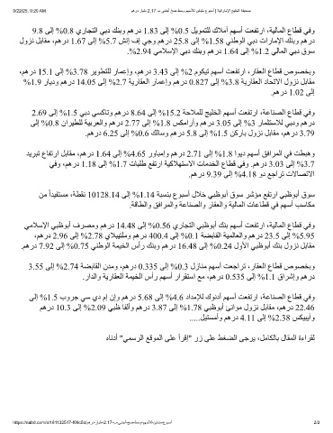 ﻲﻣﻼﺳﻹا ﻲﺒظﻮﺑأ فﺮﺼﻣو ﻢھرد 14.48 ﻰﻟإ %0.56 يرﺎﺠﺘﻟا ﻲﺒظﻮﺑأ ﻚﻨﺑ ﻢﮭﺳأ ﺖﻌﻔﺗرا ،ﺔﯿﻟﺎﻤﻟا عﺎﻄﻗ ﻲﻓو