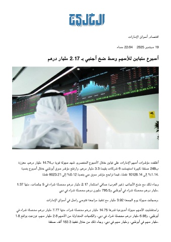 ةزﺰﻌﻣ ،ﻢﻫرد رﺎﻴﻠﻣ 14.74ب ﺔﻳﻮﻗ ﺔﻟﻮﻴﺳ ﺪﻬﺷ ،مﺮﺼﻨﻤﻟا عﻮﺒﺳﻷا لﻼﺧ ﻦﻳﺎﺒﺗ ﻠﻋ تارﺎﻣﻹا ﻢﻬﺳأ تاﺮﺷﺆﻣ ﺖﻘﻠﻏأ