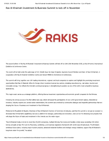 9/18/25, 10:58 AM Ras Al Khaimah Investment & Business Summit to kick off in November - Eye of Riyadh