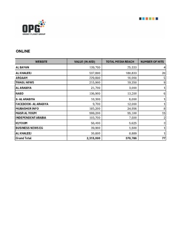 WEBSITE VALUE (IN AED) TOTAL MEDIA REACH NUMBER OF HITS