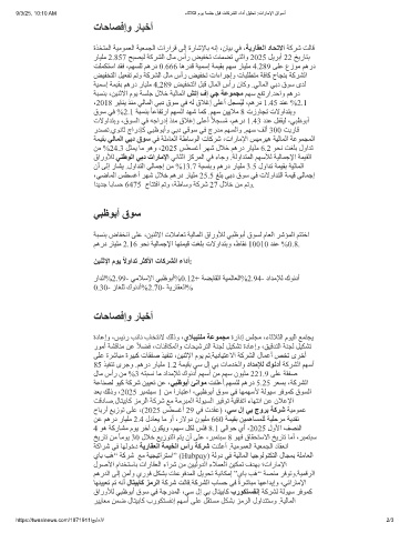 راﺪﻟا%2.99- ﻲﻣﻼﺳﻹا ﻲﺒظﻮﺑأ%0.12+ ﺔﻀﺑﺎﻘﻟا ﺔﯿﻤﻟﺎﻌﻟا%2.94- داﺪﻣﻺﻟ كﻮﻧدأ