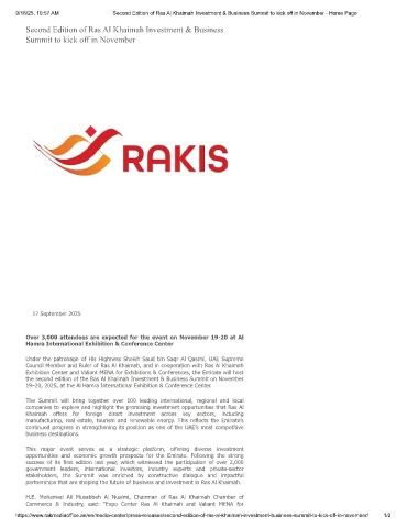 https://www.rakmediaoffice.ae/en/media-center/press-releases/second-edition-of-ras-al-khaimah-investment-business-summit-to-kick-off-in-november/ 1/2