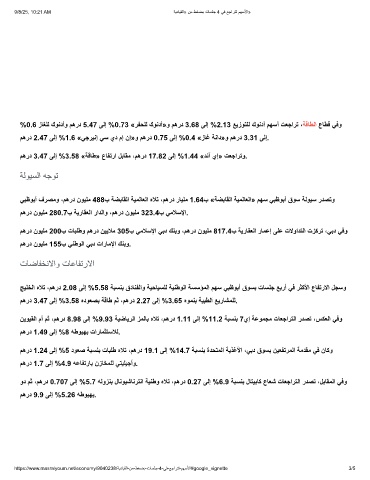 مھرد 3.47 ﻰﻟإ %3.58 «ﺔﻗﺎط» عﺎﻔﺗرا لﺑﺎﻘﻣ ،مھرد 17.82 ﻰﻟإ %1.44 «دﻧآ يإ» تﻌﺟارﺗو.
