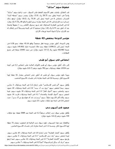 اﺬﮫﻟ ﺔﻄﻘﻧ 61 راﺪﻘﻤﺑ ضﺎﻔﺨﻧا ﻰﻠﻋ ﻖﻠﻏأ ﺪﻗ ﻲﺒظ ﻮﺑأ قﻮﺳ ﺮﺷﺆﻣ نﻮﻜﻳ اﺬﮫﺑو