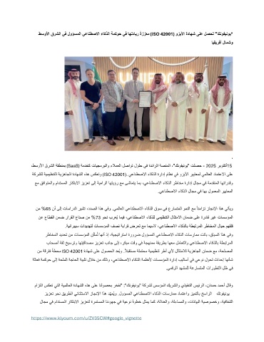 طسولأا قرشلا يف لوؤسملا يعانطصلاا ءاكذلا ةمكوح يف اهتداير ًةززعم (ISO 42001) وزيلآا ةداهش ىلع لصحت "كنوفينوي "