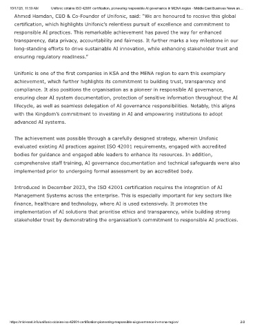 10/17/25, 11:59 AM Unifonic obtains ISO 42001 certification, pioneering responsible AI governance in MENA region - Middle East Business News an…