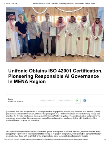10/17/25, 12:00 PM Unifonic Obtains ISO 42001 Certification, Pioneering Responsible AI Governance In MENA Region