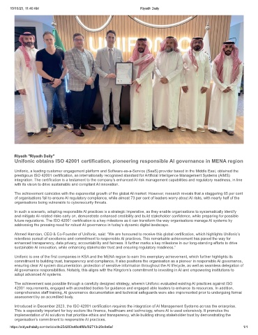 Unifonic obtains ISO 42001 certification, pioneering responsible AI governance in MENA region