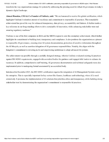 10/16/25, 11:42 AM Unifonic obtains ISO 42001 certification, pioneering responsible AI governance in MENA region | Web Release