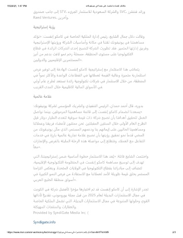 ﻲﺘﻟا ،ﺎﻨﺘﻴﺠﻴﺗاﺮﺘﺳإ ﻦﻤﺿ ﺔﻴﺳﺎﺳأ ةﻮﻄﺧ رﺎﻤﺜﺘﺳالا اﺬﻫ ﺪﻌﻳ» :ﺔﻠﺋﺎﻗ ﻊﻳﺎﺸﻟا ﺖﻤﺘﺘﺧاو