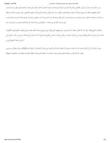 ،ﺔﯾﻣﯾﻠﻗﻹا ﺔﯾﺟوﻟوﻧﻛﺗﻟا ﺔﻣوظﻧﻣﻟا ﻲﻓ تﺳﻔﻧإ وﻛﻣﺎﻛ ﺔﻣھﺎﺳﻣ ﻊﯾﺳوﺗ ﻰﻟإ فدﮭﺗ ﻲﺗﻟا ﺎﻧﺗﯾﺟﯾﺗارﺗﺳا نﻣﺿ ﺔﯾﺳﺎﺳأ ةوطﺧ رﺎﻣﺛﺗﺳﻻا اذھ دﻌُﯾ“ :ﺔﻠﺋﺎﻗ ﻊﯾﺎﺷﻟا تﻣﺗﺗﺧاو