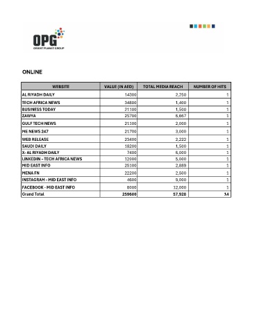 WEBSITE VALUE (IN AED) TOTAL MEDIA REACH NUMBER OF HITS