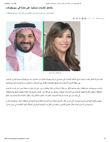 حﺮﻄﻟ «ﻚﻧﻮﻔﯿﻧﻮﯾ» ﺪﻌﺘﺴﺗ ،ﺔﻘﻄﻨﻤﻟا ﻲﻓ ﺔﺌﺷﺎﻨﻟا ﺎﯿﺟﻮﻟﻮﻨﻜﺘﻟا تﺎﻛﺮﺸﻟ ً ﺎﺑﺬﺟو ً ﺎطﺎﺸﻧ قاﻮﺳﻷا ﺮﺜﻛأ ﻦﻣ ﺪﻌﺗ ﻲﺘﻟا ،ﺔﯾدﻮﻌﺴﻟا قﻮﺴﻟا ﻲﻓ ﺔﯾﻮﻘﻟا ﺎﮭﺘﻧﺎﻜﻣ ﻞﻀﻔﺑو