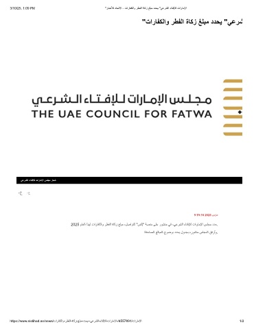 3/10/25, 1:09 PM "رﺎﺑﺧﻸﻟ دﺎﺣﺗﻻا - تارﺎﻔﻛﻟاو رطﻔﻟا ةﺎﻛز ﻎﻠﺑﻣ ددﺣﯾ "ﻲﻋرﺷﻟا ءﺎﺗﻓﻺﻟ تارﺎﻣﻹا