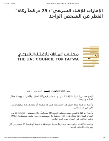 3/10/25, 1:09 PM "دﺣاوﻟا صﺧﺷﻟا نﻋ رطﻔﻟا ةﺎﻛز ً ﺎﻣھرد 25 :"ﻲﻋرﺷﻟا ءﺎﺗﻓﻺﻟ تارﺎﻣﻹا