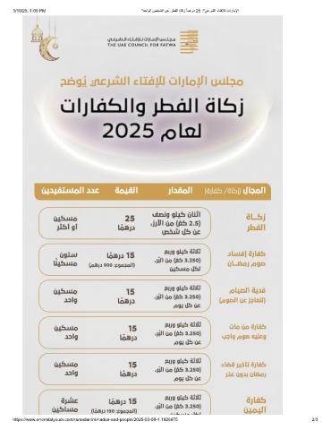 3/10/25, 1:09 PM "دﺣاوﻟا صﺧﺷﻟا نﻋ رطﻔﻟا ةﺎﻛز ً ﺎﻣھرد 25 :"ﻲﻋرﺷﻟا ءﺎﺗﻓﻺﻟ تارﺎﻣﻹا https://www.emaratalyoum.com/ramadan/ramadan-and-people/2025-03-08-1.1926975 2/3
