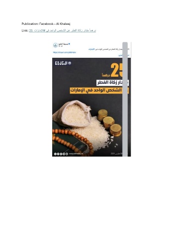 Publication: Facebook – Al Khaleej Link: 25 تاراملإا# يف دحاولا صخشلا نع رطفلا ةاكز رادقم ًامهرد