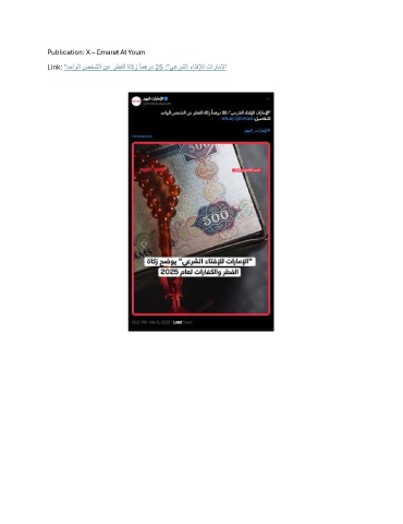 Publication: X – Emarat Al Youm Link: " دحاولا صخشلا نع رطفلا ةاكز ًامهرد 25 :"يعرشلا ءاتفلإل تاراملإا