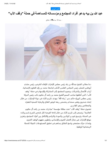 ”بﻷا ﻒﻗو“ ﺔﻠﻤﺣ ﻲﻓ ﺔﻤھﺎﺴﻤﻠﻟ ﮫﺗﺎﺴﺳﺆﻣو ﻊﻤﺘﺠﻤﻟا داﺮﻓأ ﻮﻋﺪﯾ ﮫﯿﺑ ﻦﺑ ﷲ ﺪﺒﻋ