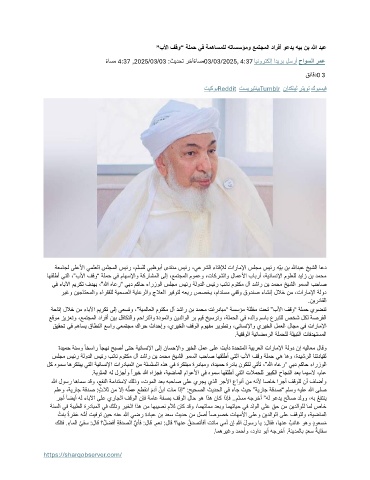 ” بلأا فقو“ ةلمح يف ةمهاسملل هتاسسؤمو عمتجملا دارفأ وعدي هيب نب الله دبع