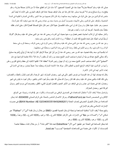 مﻠﻋو ،ﺔﯾرﺎﺟ ﺔﻗدﺻ :ٍثﻼﺛ نﻣ ﻻإ ﮫﻠﻣﻋ ﻊطﻘﻧا مدآ ُنﺑا تﺎﻣ اذإ" :ﺢﯾﺣﺻﻟا ثﯾدﺣﻟا ﻲﻓ ءﺎﺟ ثﯾﺣ "ﺔﯾرﺎﺟ ﺔﻗدﺻ" مﻠﺳو ﮫﯾﻠﻋ ﷲ ﻰﻠﺻ