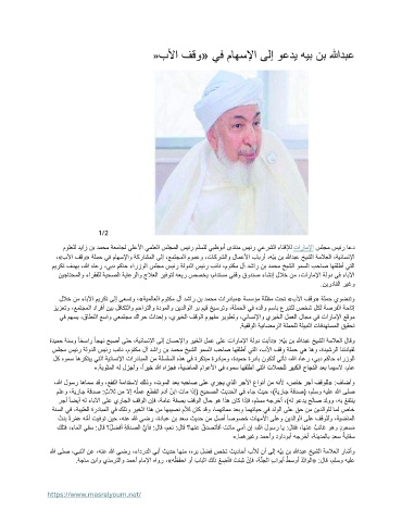 ،»بلأا فقو« ةلمح يف ماهسلإاو ةكراشملا ىلإ ،عمتجملا مومعو ،تاكرشلاو لامعلأا بابرأ ،هّيب نب اللهدبع خيشلا ةملاعلا ،ةيناسنلإا