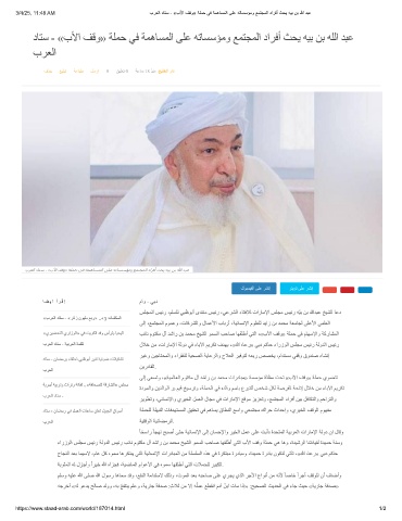 3/4/25, 11:48 AM برﻌﻟا دﺎﺗﺳ - «بﻷا فﻗو» ﺔﻠﻣﺣ ﻲﻓ ﺔﻣھﺎﺳﻣﻟا ﻰﻠﻋ ﮫﺗﺎﺳﺳؤﻣو ﻊﻣﺗﺟﻣﻟا دارﻓأ ثﺣﯾ ﮫﯾﺑ نﺑ ﷲ دﺑﻋ