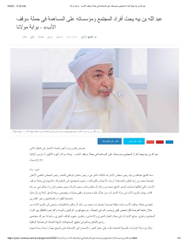 3/4/25, 11:48 AM ﺎﻧﻻوﻣ ﺔﺑاوﺑ - «بﻷا فﻗو» ﺔﻠﻣﺣ ﻲﻓ ﺔﻣھﺎﺳﻣﻟا ﻰﻠﻋ ﮫﺗﺎﺳﺳؤﻣو ﻊﻣﺗﺟﻣﻟا دارﻓأ ثﺣﯾ ﮫﯾﺑ نﺑ ﷲ دﺑﻋ
