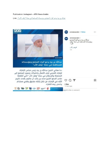 Publication: Instagram – ARN News Arabic Link: "بلأا فقو" ةلمح يف ةمهاسملل هتاسسؤمو عمتجملا دارفأ وعدي هيب نب اللهدبع .