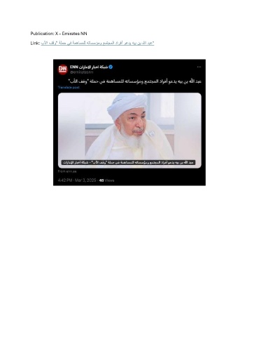 Publication: X – Emirates NN Link: بلأا فقو" ةلمح يف ةمهاسملل هتاسسؤمو عمتجملا دارفأ وعدي هيب نب الله دبع"