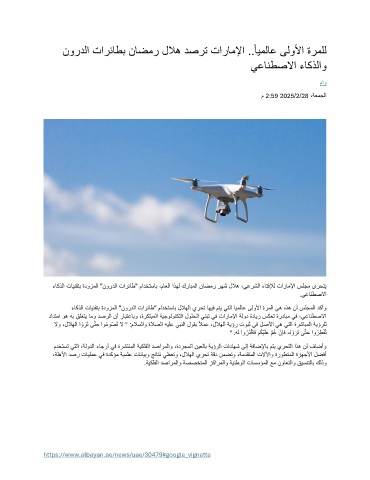 ءاكذلا تاينقتب ةدوزملا "نوردلا تارئاط" مادختساب ،ماعلا اذهل كرابملا ناضمر رهش للاه ،يعرشلا ءاتفلإل تاراملإا سلجم ىرحتي