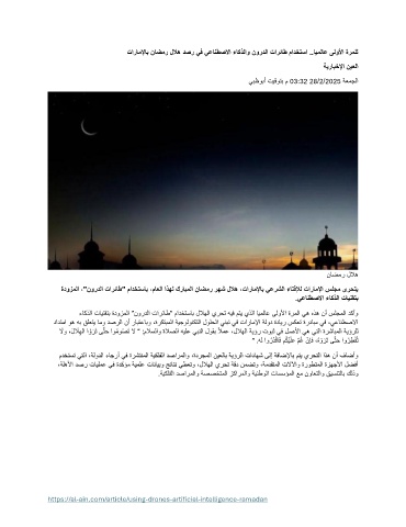تاراملإاب ناضمر للاه دصر يف يعانطصلاا ءاكذلاو نوردلا تارئاط مادختسا ..ايملاع ىلولأا ةرملل