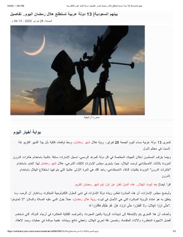 اًدﻏ مﯾرﻛﻟا رﮭﺷﻟا أدﺑﯾ نﺄﺑ ﺔﯾﻛﻠﻓ تﺎﻌﻗوﺗ طﺳو ،نﺎﺿﻣر رﮭﺷ لﻼھ ﺔﯾؤر ،رﯾارﺑﻓ 28 ﺔﻌﻣﺟﻟا موﯾﻟا ءﺎﺳﻣ ﺔﯾﺑرﻋ ﺔﻟود 13 ىرﺣﺗﺗ