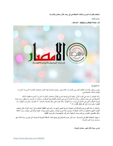 ةدوزملا ،"نوردلا تارئاط" مادختساب ،ماعلا اذهل كرابملا ناضمر رهش للاه ،تاراملإاب يعرشلا ءاتفلإل تاراملإا سلجم ىرحتي