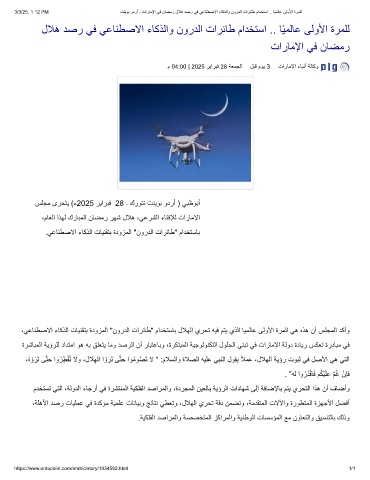 3/3/25, 1:12 PM تﻧﯾوﺑ ودرأ - تارﺎﻣﻹا ﻲﻓ نﺎﺿﻣر لﻼھ دﺻر ﻲﻓ ﻲﻋﺎﻧطﺻﻻا ءﺎﻛذﻟاو نوردﻟا تارﺋﺎط مادﺧﺗﺳا .. ﺎًﯾﻣﻟﺎﻋ ﻰﻟوﻷا ةرﻣﻠﻟ