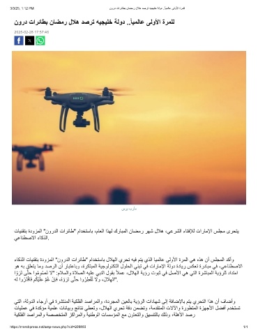 تﺎﯾﻧﻘﺗﺑ ةدوزﻣﻟا "نوردﻟا تارﺋﺎط" مادﺧﺗﺳﺎﺑ ،مﺎﻌﻟا اذﮭﻟ كرﺎﺑﻣﻟا نﺎﺿﻣر رﮭﺷ لﻼھ ،ﻲﻋرﺷﻟا ءﺎﺗﻓﻺﻟ تارﺎﻣﻹا سﻠﺟﻣ ىرﺣﺗﯾ