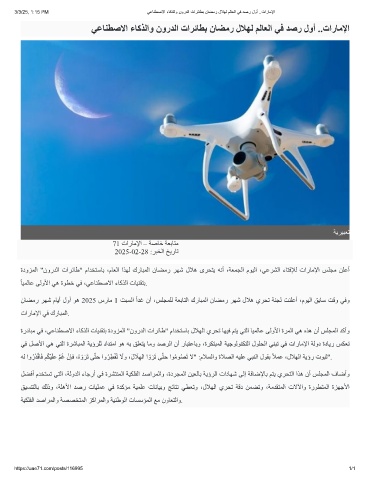 3/3/25, 1:15 PM ﻲﻋﺎﻧطﺻﻻا ءﺎﻛذﻟاو نوردﻟا تارﺋﺎطﺑ نﺎﺿﻣر لﻼﮭﻟ مﻟﺎﻌﻟا ﻲﻓ دﺻر لوأ ..تارﺎﻣﻹا